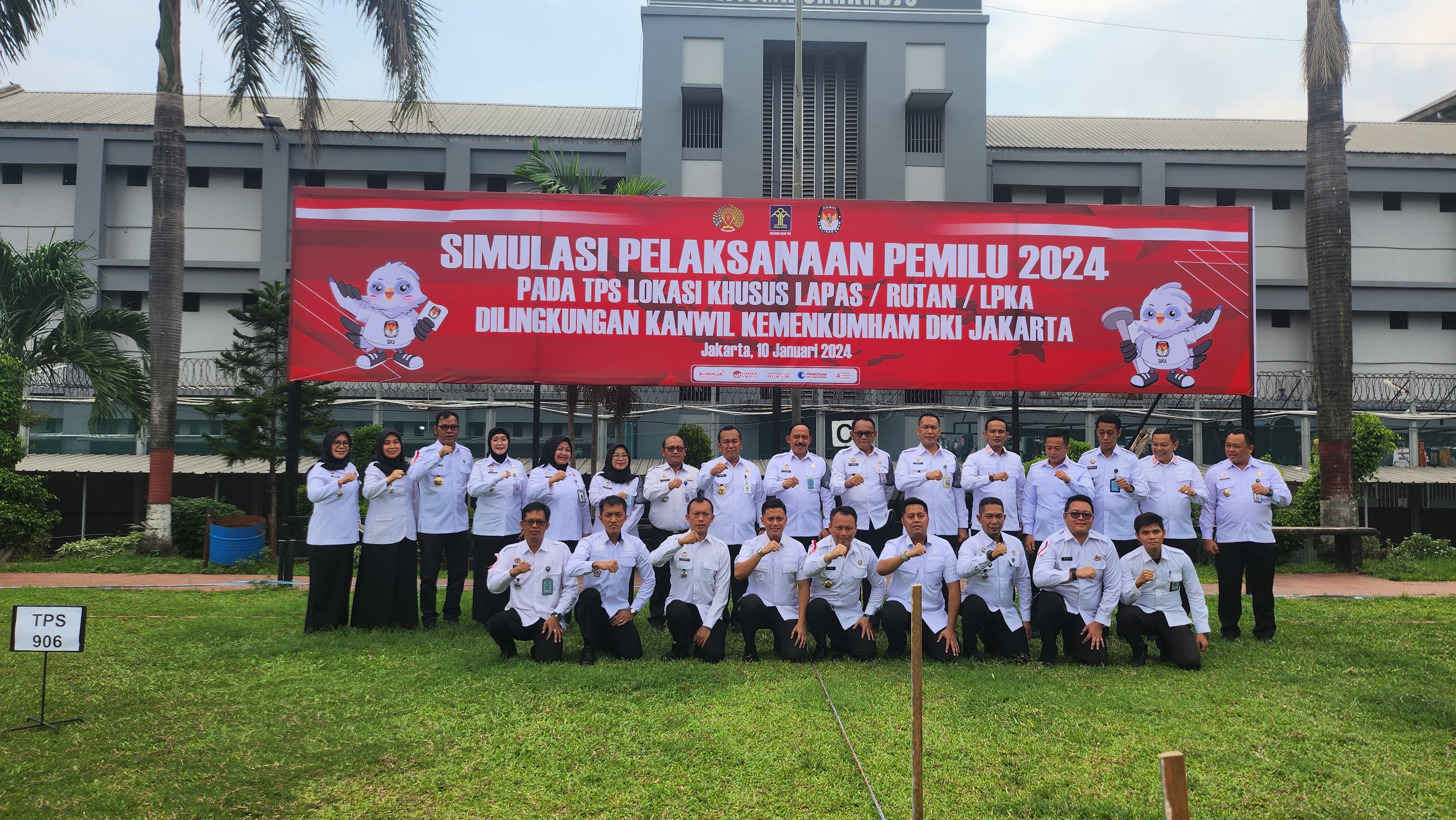Mediatamanews/Jakarta – Dalam rangka mewujudkan pemilu tahun 2024 yang berasaskan Langsung, Umum, Bebas, Rahasia, Jujur dan Adil (LUBER dan JURDIL) serta transparan, Kantor Wilayah Kementerian Hukum dan Hak Asasi Manusia (Kemenkumham) DKI Jakarta, melaksanakan Simulasi Pelaksanaan Pemilu tahun 2024 pada Lapas/Rutan/LPKA yang dipusatkan pada Lembaga Pemasyarakatan Kelas I Cipinang dengan dipimpin langsung Kepala Kantor Wilayah Kemenkumham DKI Jakarta (Ibnu Chuldun) dan dihadiri Inspektur Wilayah III, Iwan Santoso, serta seluruh Pimpinan Tinggi Pratama pada Kanwil Kemenkumham DKI Jakarta yaitu Kepala Divisi Administrasi (Mutia Farida), Kepala Divisi Pemasyarakatan (Tonny Nainggolan), Kepala Divisi Keimigrasian (Sandi Andaryadi), Kepala Divisi Pelayanan Hukum dan HAM (Zulhairi) dan seluruh Kepala Unit Pelaksana Teknis pada Lapas/Rutan/LPKA dan perwakilan Ketua Kelompok Penyelenggara Pemungutan Suara (KPPS) yang ditunjuk pada masing-masing Unit Pelaksana Teknis Lapas/Rutan/LPKA.