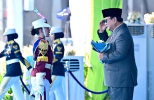 Mediatama,Jakarta-Presiden Prabowo Subianto bertindak selaku inspektur upacara memimpin jalannya Upacara Peringatan ke-79 Hari Bhayangkara Tahun 2025 yang digelar di Monumen Nasional (Monas), Jakarta, pada Selasa (1/7/2025).