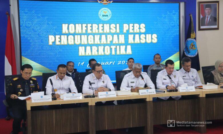 “Dengan jumlah barang bukti narkotika yang berhasil disita, sebanyak 39.092 jiwa masyarakat Indonesia berhasil diselamatkan dari potensi penyalahgunaan narkotika,” ujar Kepala BNN dalam Konferensi Pers Pengungkapan Kasus Narkotika di Jakarta, Selasa (14/1/2024).