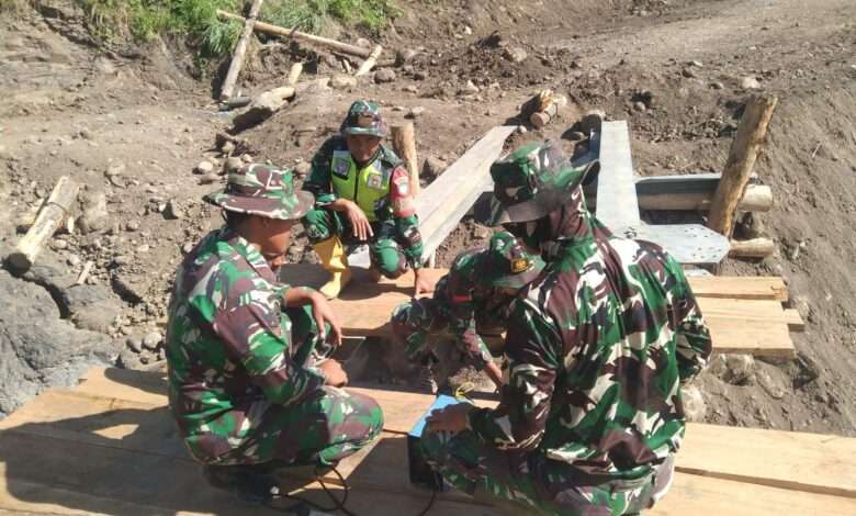 TNI AD dan Warga Gotong Royong Bangun Jembatan Darurat di Burlah