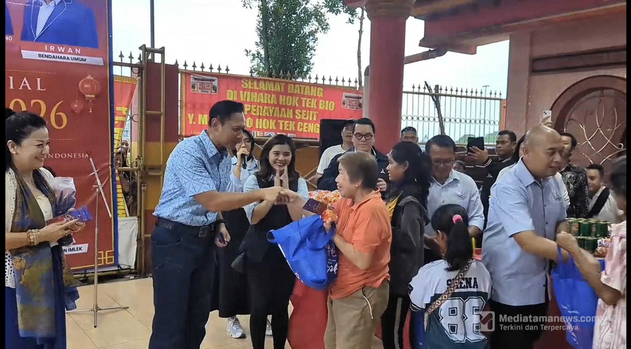 Mediatamanews|Tangerang – Ketua Umum DPP Partai Demokrat, Agus Harimurti Yudhoyono (AHY), menghadiri kegiatan bakti sosial dalam rangka menyambut Tahun Baru Imlek 2577 Kongzili atau 2026 Masehi di Vihara Hok Tek Bio, Kecamatan Teluknaga, Kabupaten Tangerang, Banten, Rabu (11/2/2026) sore.