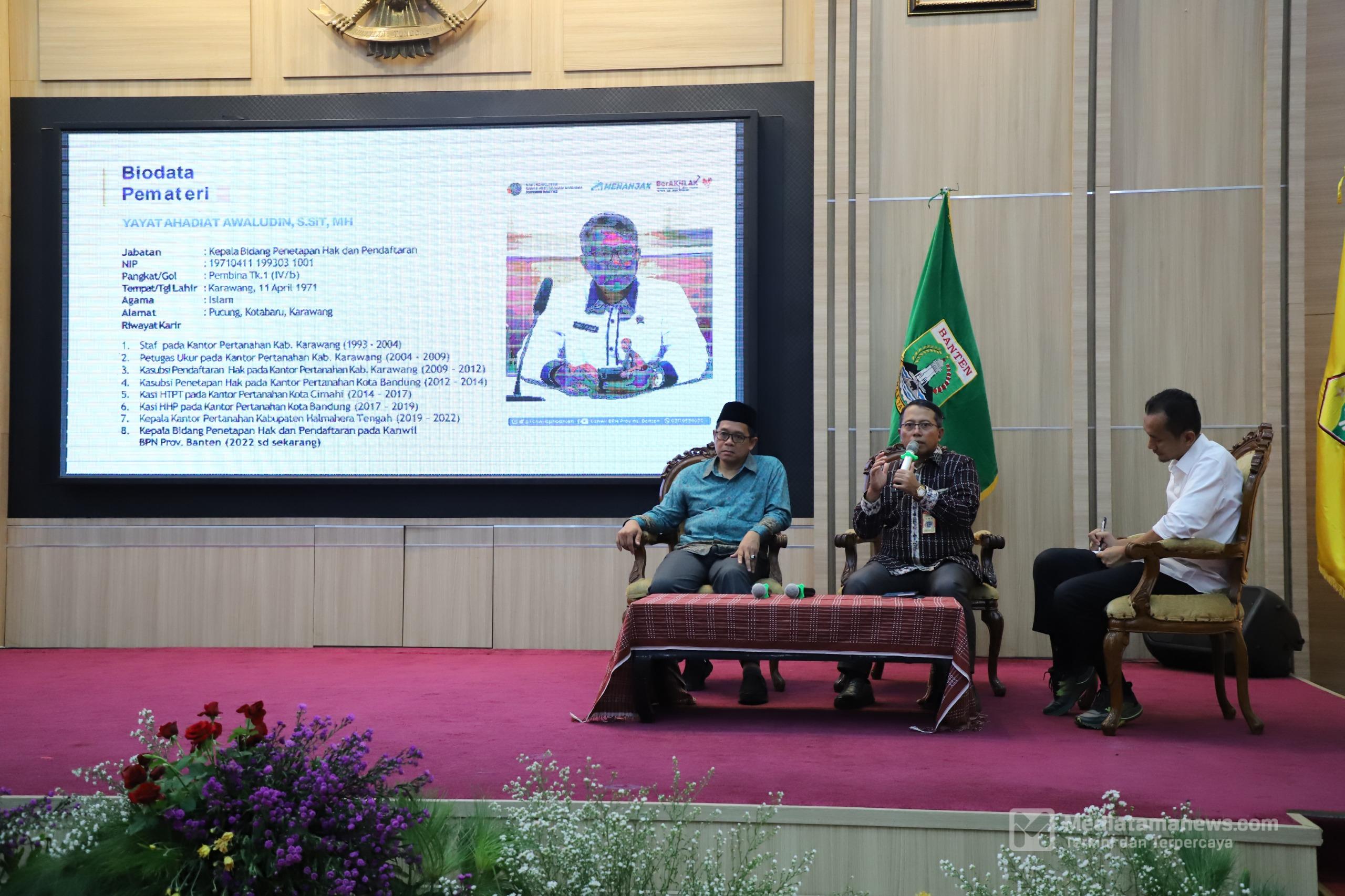 Kantor Wilayah Badan Pertanahan Nasional (BPN) Provinsi Banten bersama Badan Wakaf Indonesia (BWI) menyelenggarakan Sosialisasi Percepatan Pendaftaran Tanah Wakaf dan Optimalisasi Wakaf/Ist.