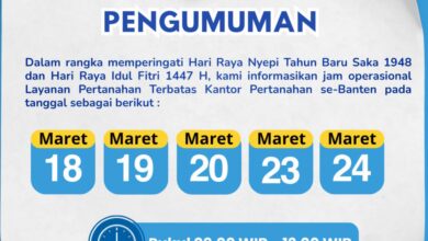 Pelayanan Pertanahan Seluruh Kantah Provinsi Banten Tetap Buka Selama Libur Nyepi dan Idul Fitri 1447H/2026