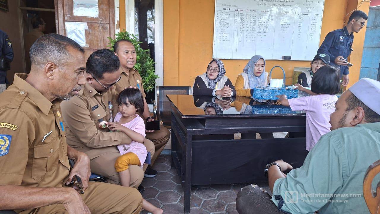 Sesekali Acep mengajak balita tersebut berinteraksi. Ironisnya, anak malang ini merasa nyaman dan selalu menjawab pertanyaan Kadinsos dalam pangkuan.