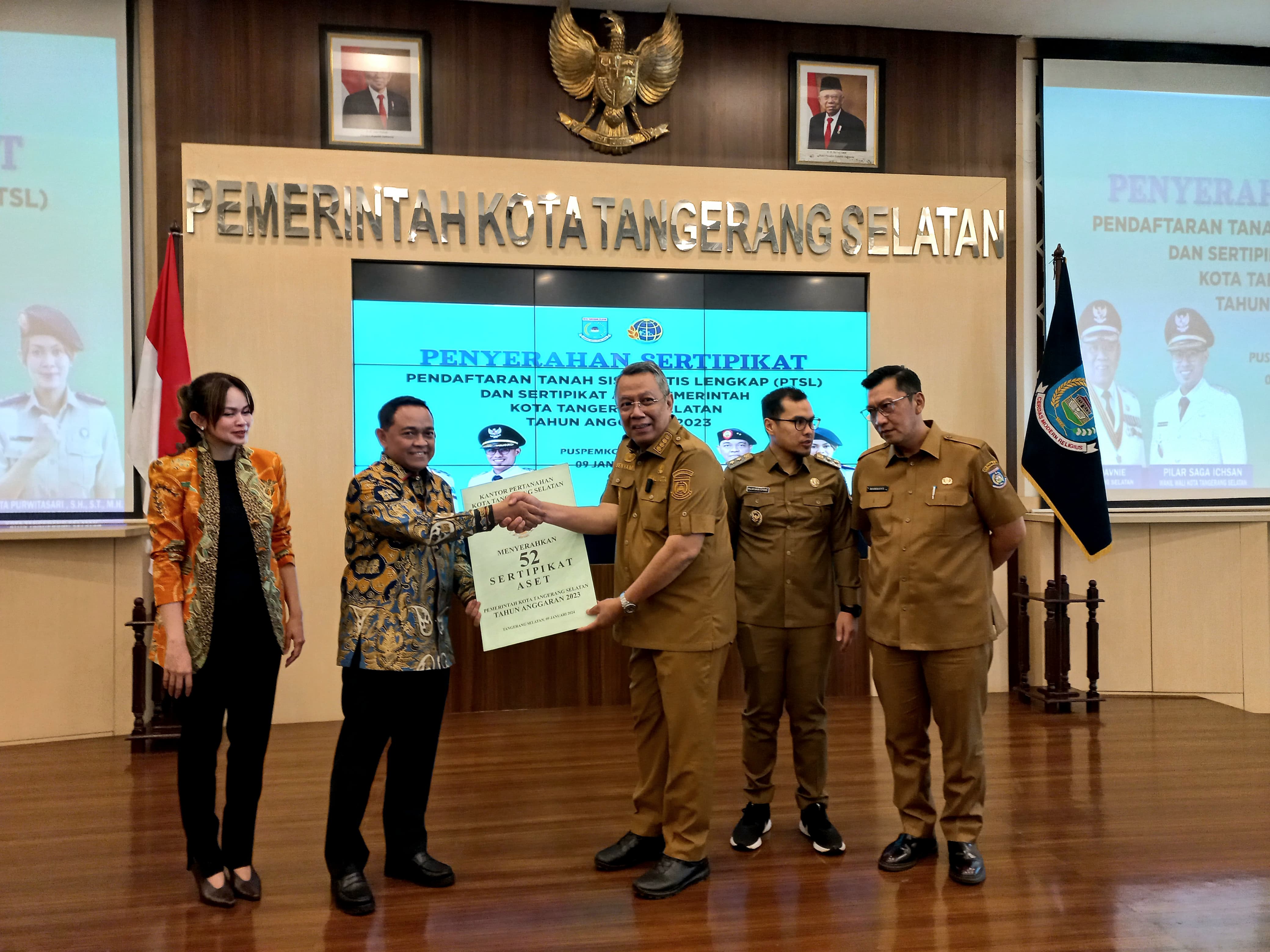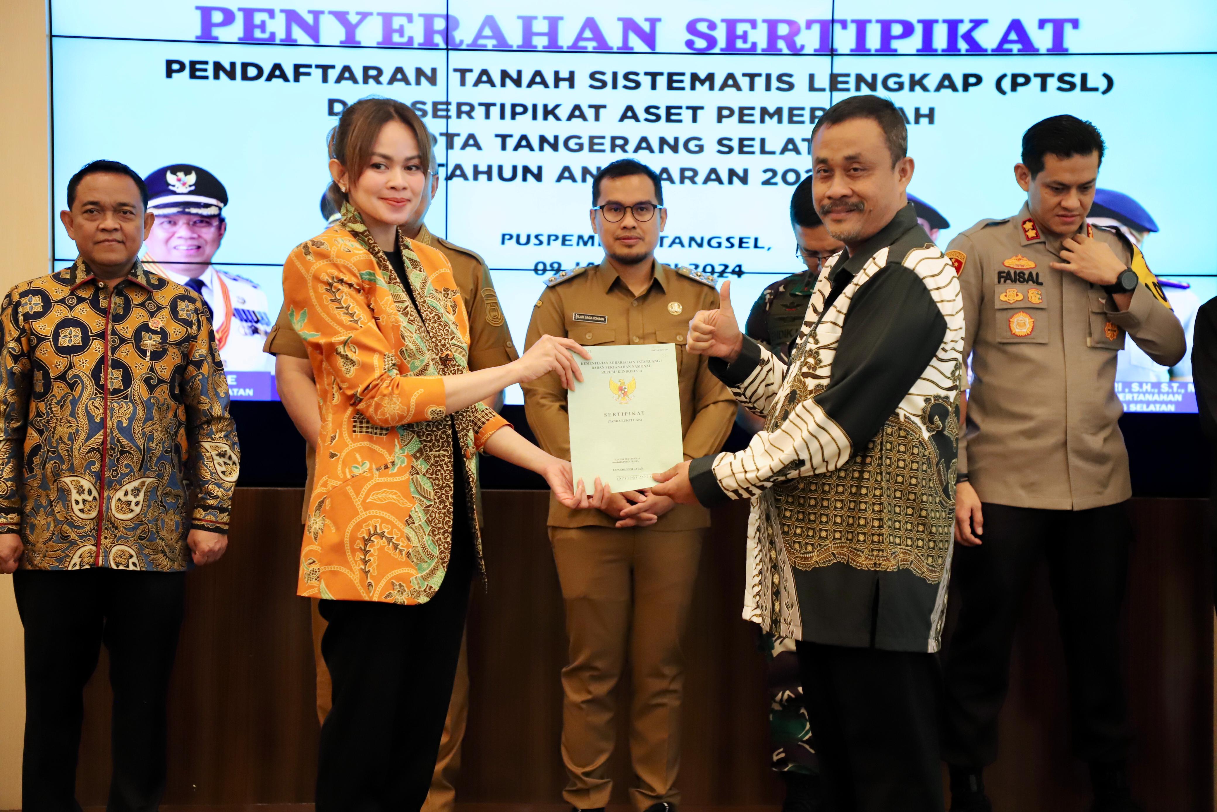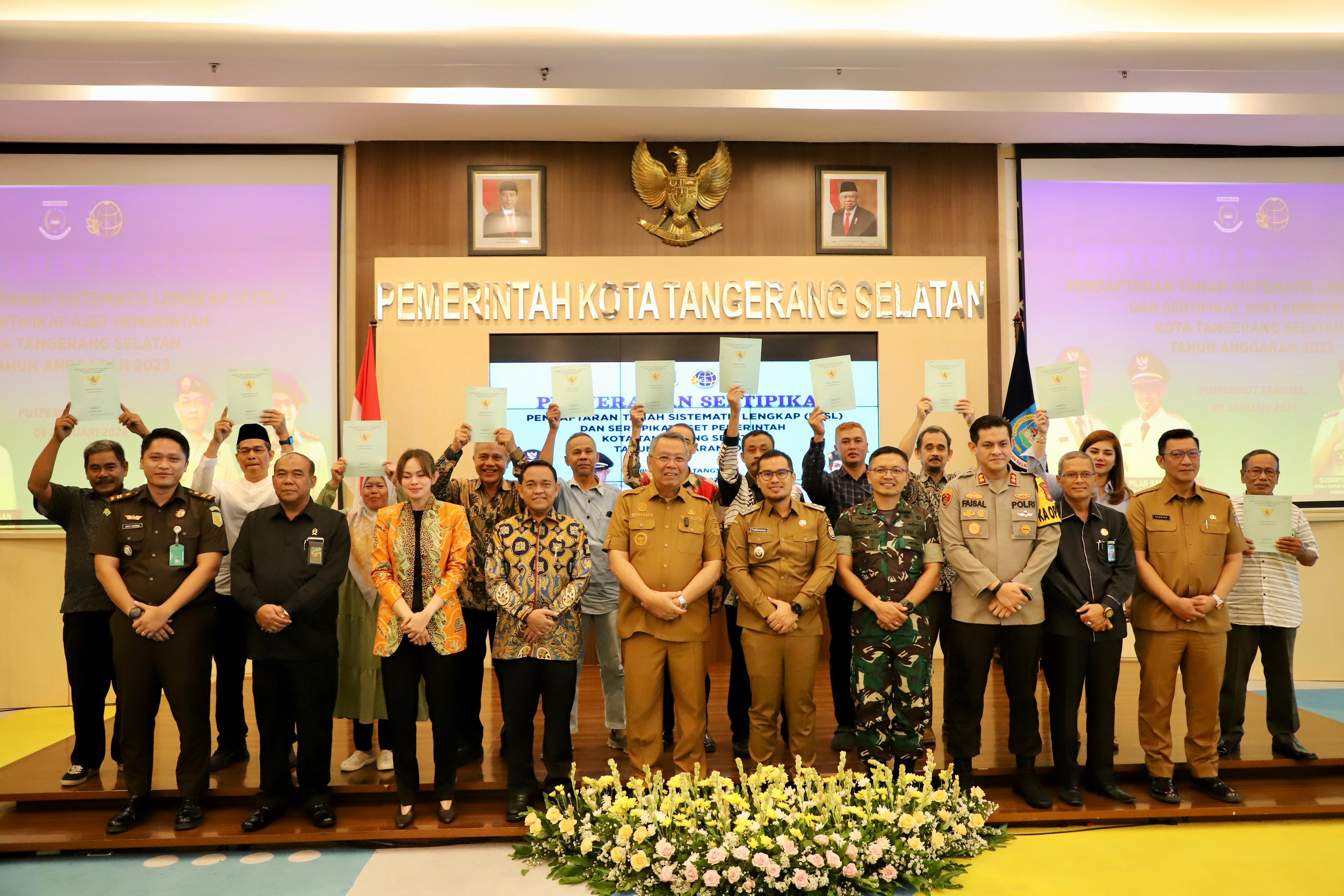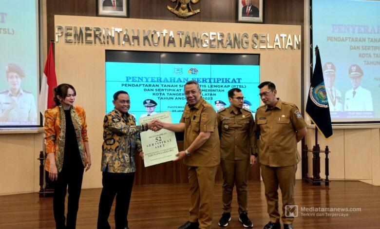 Pada kesempatan yang sama juga diserahkan 52 (lima puluh dua) sertipikat aset Pemerintah Kota Tangerang Selatan. Kegiatan ini turut dihadiri Forum Komunikasi Pimpinan Daerah Kota Tangerang Selatan, Kepala Bagian Tata Usaha Osman Affan dan Kepala Bidang di Lingkungan Kantor Wilayah BPN Provinsi Banten. (Ian Rasya)