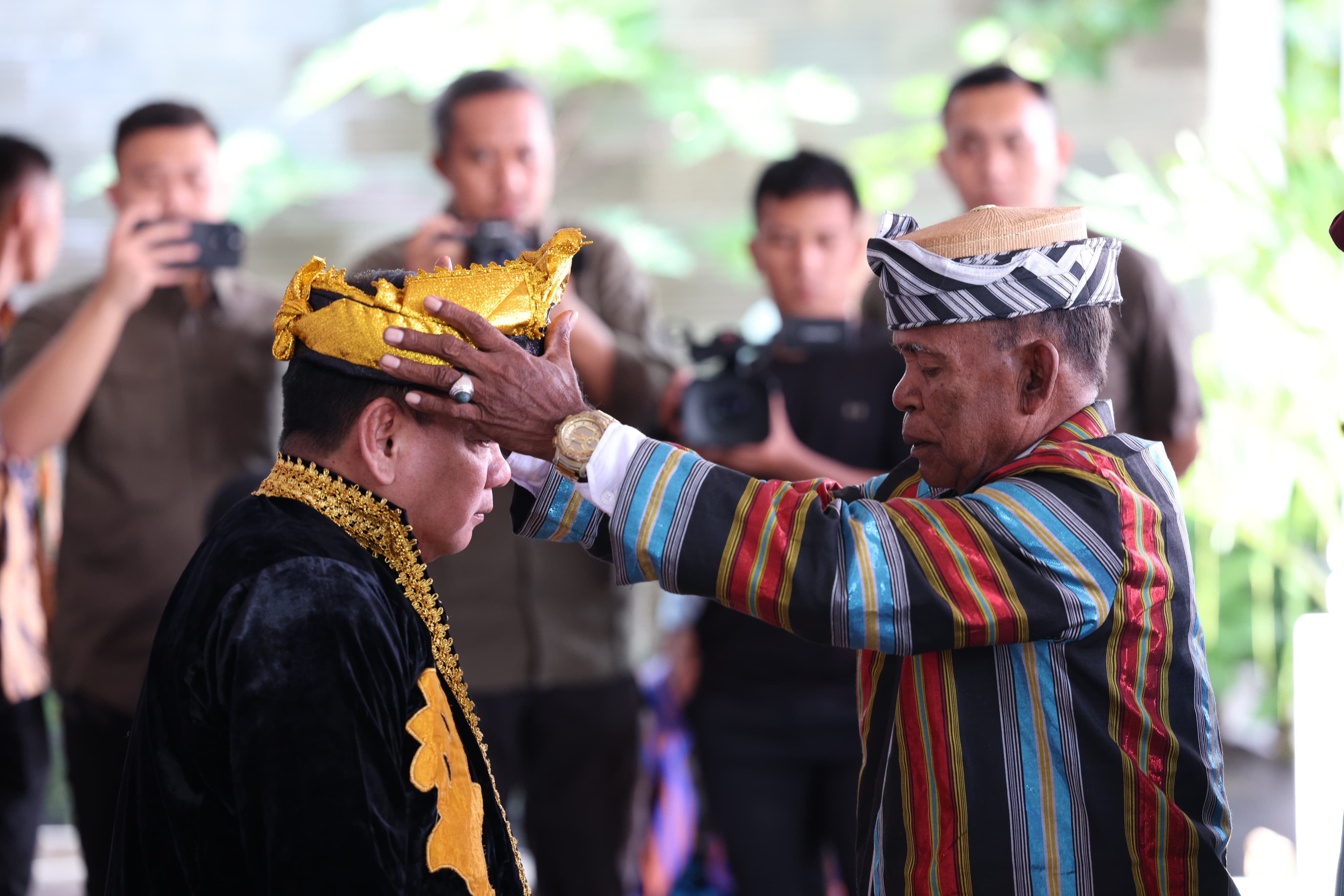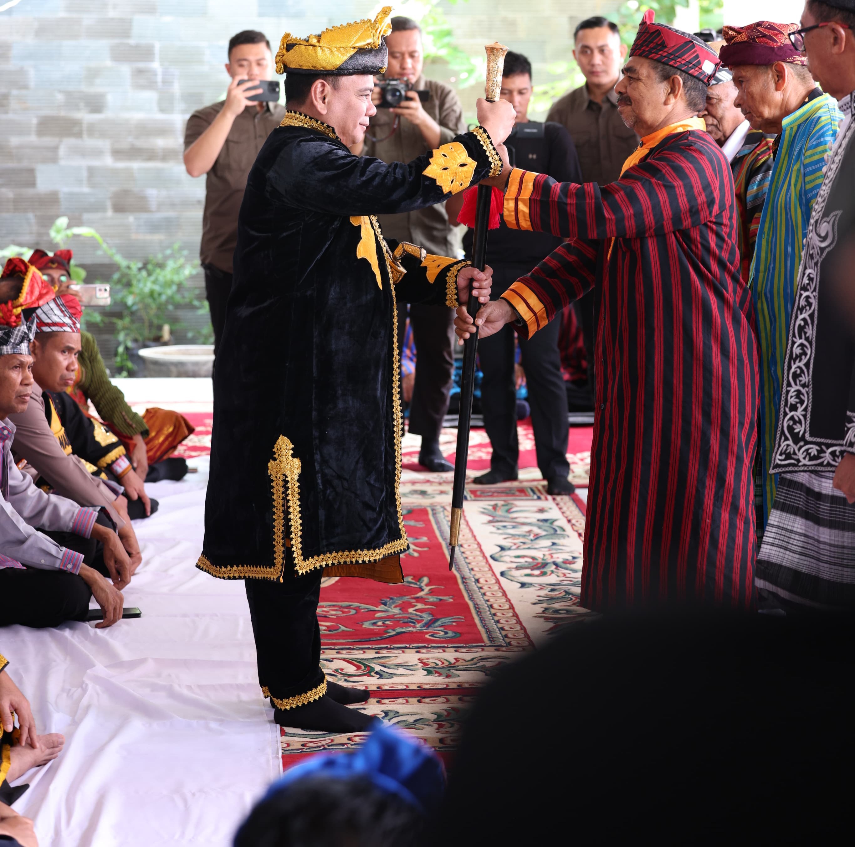 Penganugerahan gelar adat Kolakino Liwu Pancana kepada Komjen Pol Andap Budhi ditandai dengan pemasangan kampurui oleh La Gu selaku Parabela Sara Bombona Wulu Buton Tengah.