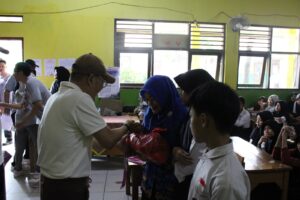 Serang | Mediatamanews – Kepala Kantor Wilayah Direktorat Imigrasi Banten Hendro Tri Prasetyo bersama Kantor Imigrasi Kelas I Non TPI Serang Hasrullah membagikan makanan gizi gratis (MBG) bagi siswa Sekolah Dasar Negeri (SDN) 03 Ciputat Kaligandu Kota Serang, dalam mendukung program Asta Cita Presiden Prabowo Subianto untuk pemenuhan gizi bagi generasi bangsa.