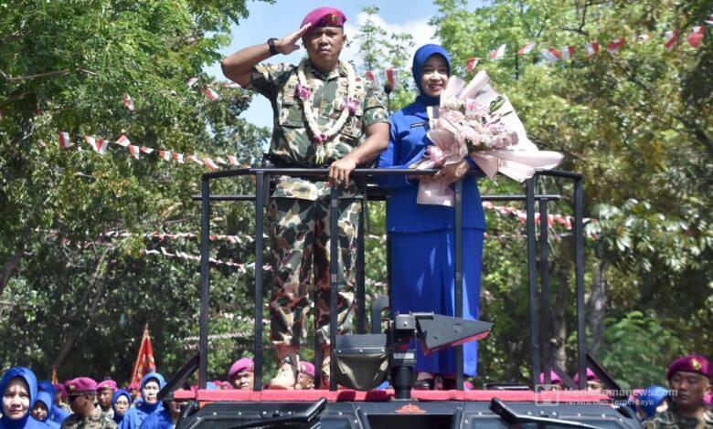 Mediatamanews | Sidoarjo – Komandan Brigif 2 Marinir Kolonel Marinir Daniel Tarigan menghadiri upacara tradisi pelepasan dan mengantar Pejabat Lama Komandan Pasmar 2, Brigadir Jenderal TNI (Mar) Nanang Saefulloh, S.E., M.M., di Kesatrian Marinir Moekijat, Mako Pasmar 2, Gedangan, Sidoarjo, Jawa Timur. Rabu (03/09/2025).