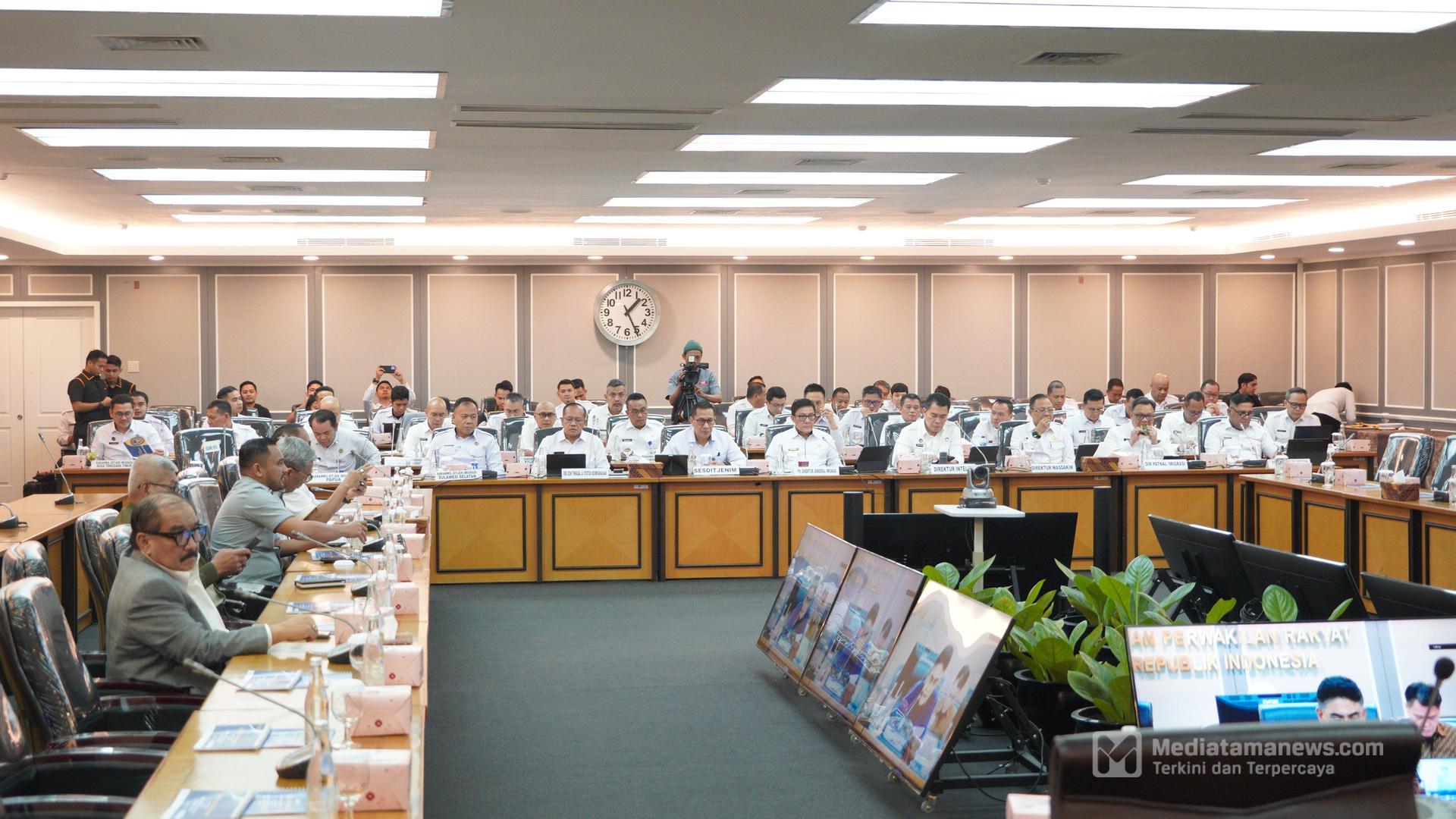 Mediatamanews | Jakarta – Komisi XIII DPR dukung Direktorat Jenderal (Ditjen) Imigrasi memberikan tunjangan untuk petugas imigrasi yang bertugas di wilayah perbatasan, terdepan dan terluar Indonesia. Hal itu disampaikan sebagai hasil Rapat Dengar Pendapat (RDP) dengan Komisi XIII DPR RI pada Senin (24/02/2025). Rapat tersebut membahas pelaksanaan tugas dan fungsi imigrasi khususnya dalam pengawasan orang asing dan pemberantasan tindak pidana perdagangan orang (TPPO). Plt Direktur Jenderal Imigrasi, Saffar Muhammad Godam menyebutkan, masih terdapat beberapa tantangan dalam menjaga kedaulatan negara di bidang keimigrasian yang harus diselesaikan.