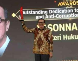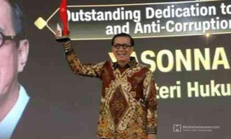 Mediatamanews|Medan – Menteri Hukum dan HAM, Yasonna H. Laoly, menerima penghargaan dalam CNN Indonesia Awards 2024 dengan kategori “Outstanding Dedication to Law Enforcement and Anti-Corruption Movement”. Penghargaan ini diserahkan langsung oleh Chairman CT Corp, Chairul Tanjung, di JW Marriott Hotel Medan. Penghargaan tersebut merupakan bentuk apresiasi atas dedikasi luar biasa Yasonna dalam penegakan hukum dan gerakan antikorupsi di Indonesia.