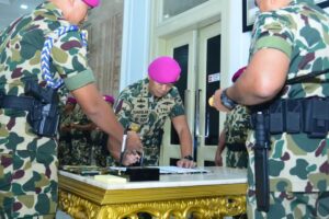 Sementara itu, Mayor Jenderal TNI Marinir Suherlan, S.E., M.M., M.Sc., CHRMP., didampingi Ny. Uni Suherlan, menyatakan kesiapan mengemban amanah sebagai Kaskormar dengan semangat, keikhlasan, guyub dan humanis.