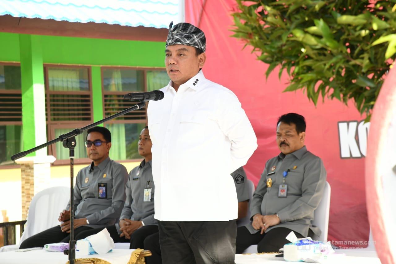 Sekretaris Jenderal Kemenkumham, Andap Budhi Revianto saat memberikan kata Berbagai terkait penyaluran bantuan sosial bagi kaum Dhuafa dan Anak Yatim Piatu korban bencana alam di Kendari/Ist.