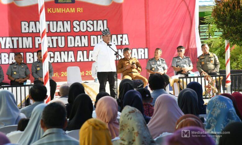 Mediatamanews|Kendari – Kementerian Hukum dan HAM (Kemenkumham) menyalurkan bantuan sosial (bansos) bagi kaum dhuafa dan yatim piatu yang menjadi korban bencana alam di Kendari, Sulawesi Tenggara. Bansos tersebut merupakan hasil sumbangan yang dikumpulkan oleh pegawai Kemenkumham.