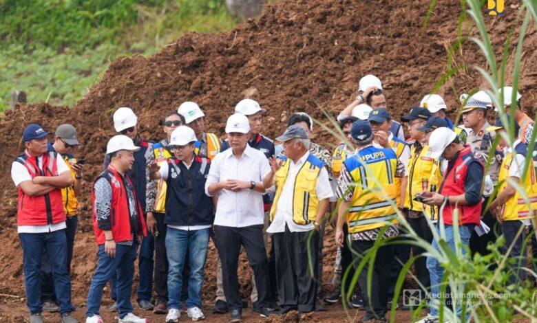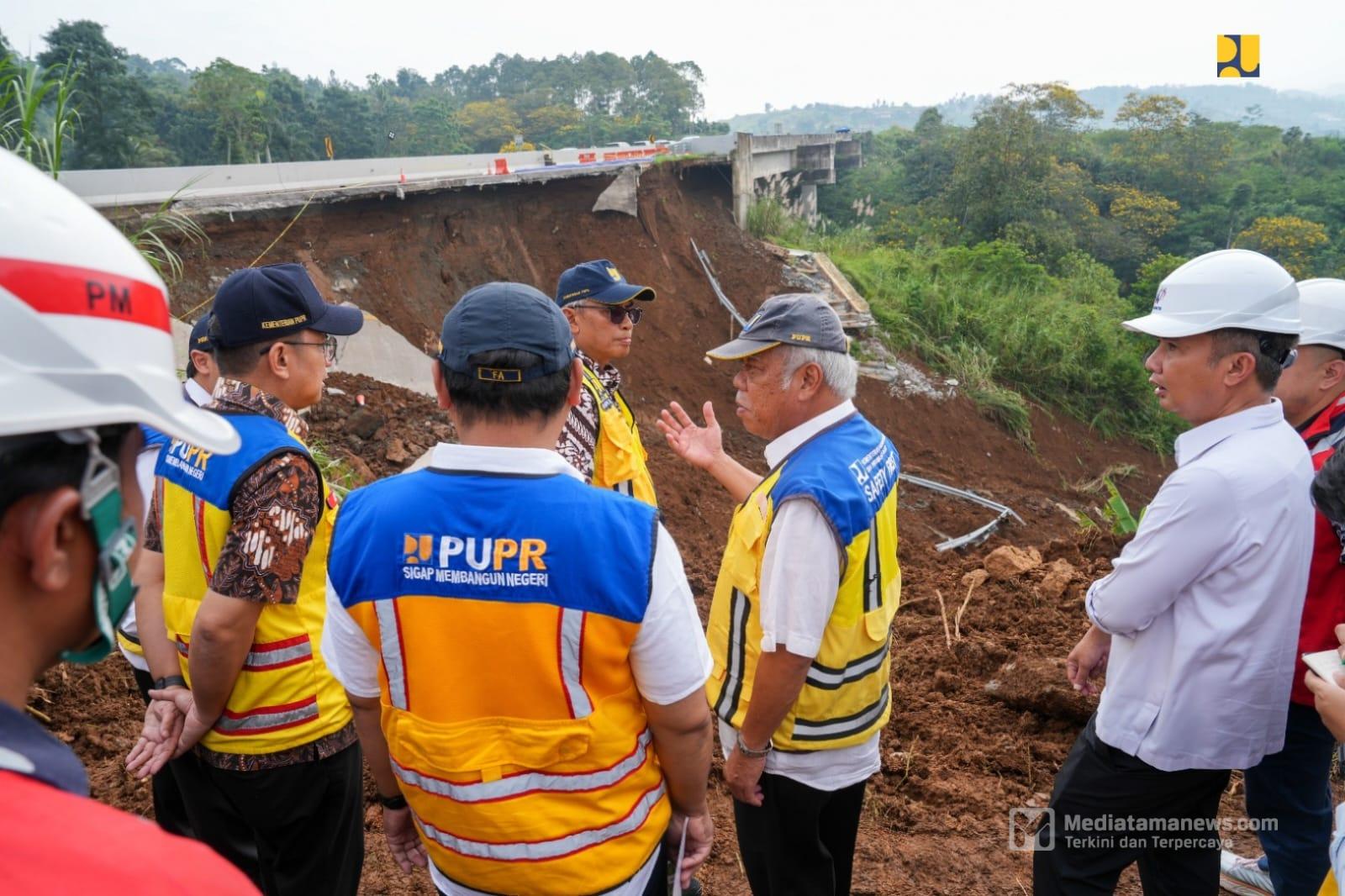 Mediatamanews|Sukabumi – Menteri Pekerjaan Umum dan Perumahan Rakyat (PUPR) Basuki Hadimuljono didampingi Pj Gubernur Jawa Barat Bey Machmudin meninjau penanganan darurat Jalan Tol Bogor-Ciawi-Sukabumi (Bocimi) di KM 64+600 A yang mengalami longsor pada Rabu malam lalu (3/5/2024).