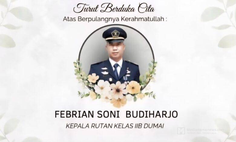 Mediatamanews | Dumai – “Inna Lillaahi Wa Inna Ilaihi Rojiuuun”, Putra Terbaik Pemasyarakatan Rumah Tahanan (Rutan) Kelas IIB Dumai telah meninggal dunia pada hari ini Kamis, 28/08/2025, Almarhum. Febrian Sony Budiharjo, A.Md.IP, S,IP, M.Si, adalah sosok figur yang sangat humoris dan senang dalam bergaul, telah menghembuskan nafas terakhirnya pukul.01.30 pagi dinihari di Rumah Sakit Intan Husada, Kabupaten Garut Jawa Barat dikarenakan Sakit Jantung, almarhum akan dimakamkan di TPU Kp. Citeguh Rt.01/01 Desa Tenjowaringin, Kecamatan Salawu – Kabupaten Tasikmalaya.