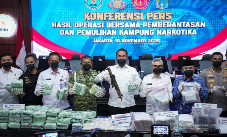Mediatamanews | Jakarta – Sebagai bagian dari upaya nasional dalam pemberantasan peredaran gelap narkoba, Badan Narkotika Nasional (BNN) bersama Kepolisian Negara Republik Indonesia (Polri), Tentara Nasional Indonesia (TNI), dan Pemerintah Daerah menggelar Operasi Bersama Pemberantasan dan Pemulihan Kampung Narkoba secara serentak pada 5 s.d. 7 November 2025, di berbagai wilayah Indonesia.